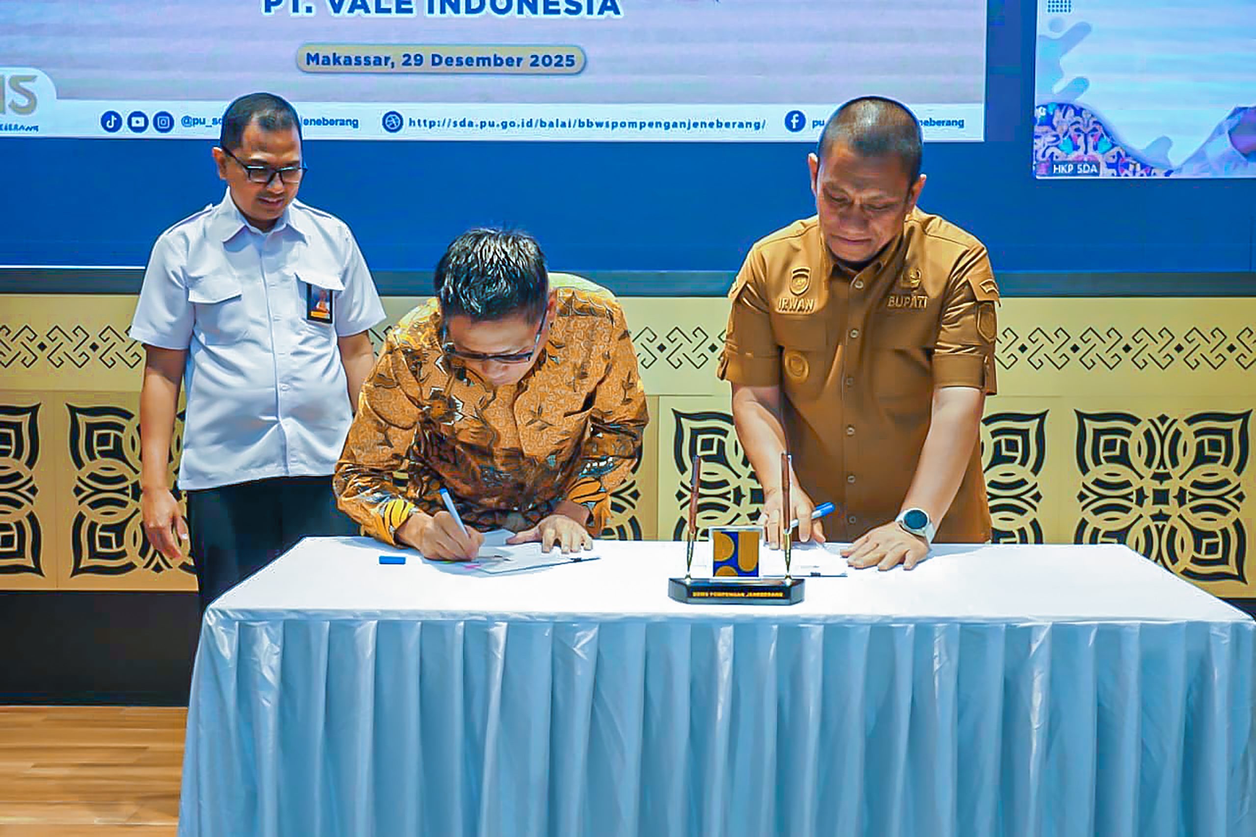 Penandatanganan kerjasama berlangsung di Kantor BBWS Pompengan Jeneberang, Kementerian Pekerjaan Umum dan Perumahan Rakyat (KemenPUPR) oleh Bupati Luwu Timur Irwan Bachri Syam, Kepala BBWS Pompengan Jeneberang Heriantono Waluyadi, serta Wakil Presiden Direktur dan Chief Operation and Infrastructure Officer PT Vale Indonesia, Abu Ashar.