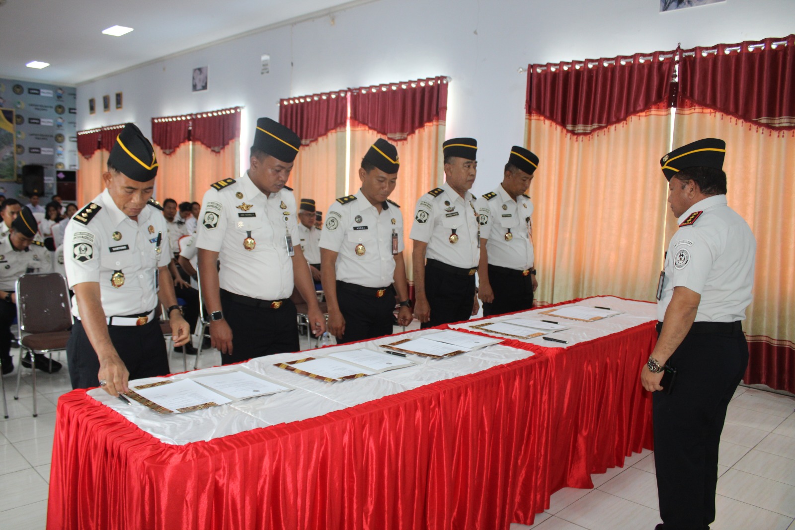 Usai pengarahan, kegiatan dilanjutkan dengan penandatanganan Komitmen Bersama oleh pejabat pusat dan wilayah sebagai simbol keseriusan dan tanggung jawab dalam mewujudkan tata kelola pemerintahan yang baik di lingkungan Kemenimipas.