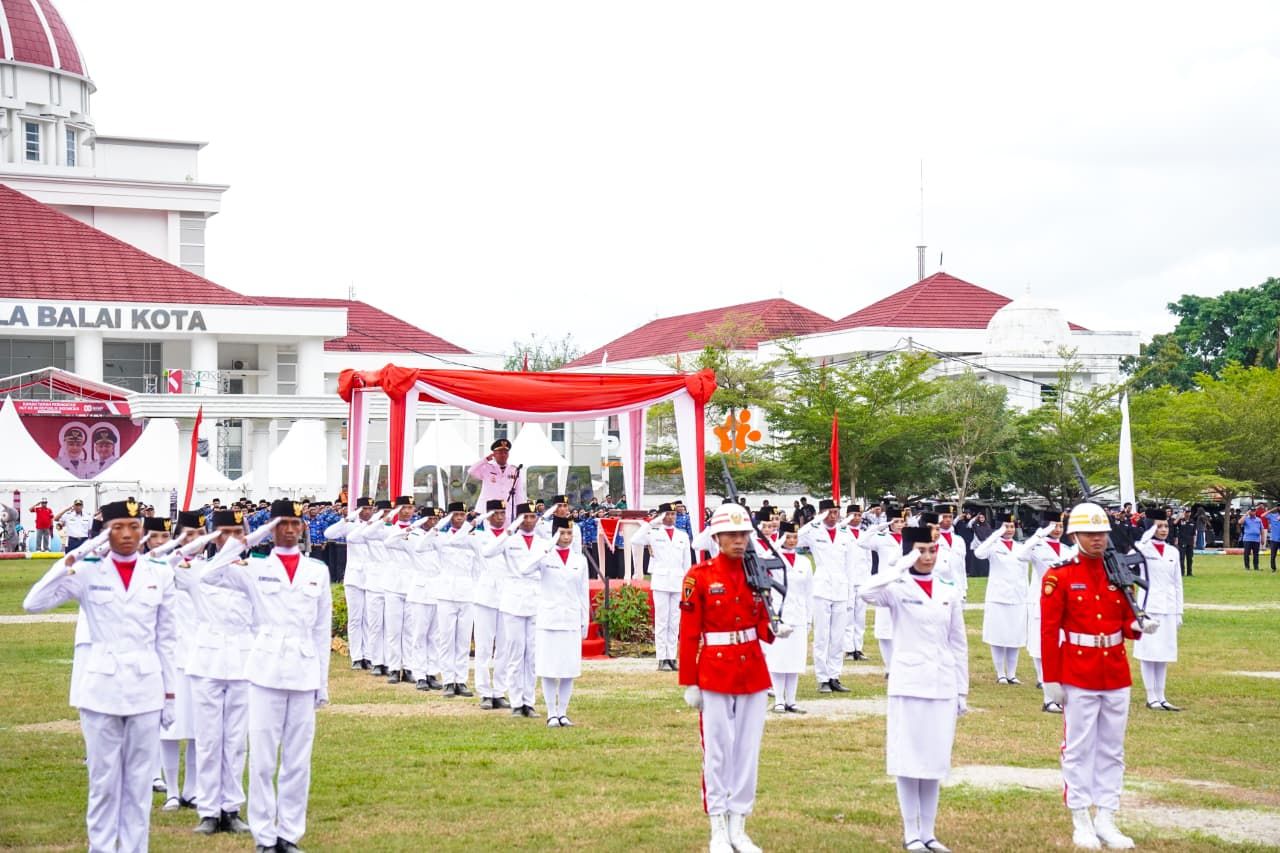 Upacara penurunan bendera Merah Putih dalam rangka Dirgahayu RI ke-80 berjalan lancar dan penuh khidmat. (*)